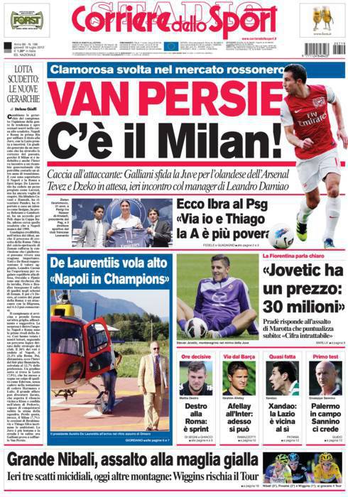 CORRIERE VAN PERSIE MILAN – Sul Corriere dello Sport si parla di Van Persie che è a un passo dal Milan.