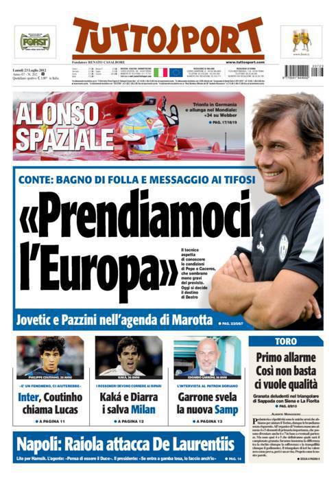 TUTTOSPORT EUROPA – Su Tuttosport si parla di Conte che ai tifosi della Juventus ha dichiarato di essere pronto a prendersi l’Europa.