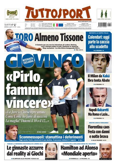 TUTTOSPORT GIOVINCO PIRLO – Su Tuttosport intervista a Giovinco che chiama Pirlo per vincere.
