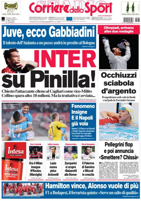 CORRIERE INTER PINILLA – L’Inter, a caccia di un vice Milito, pensa al cileno Pinilla del Cagliari.