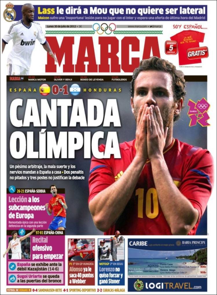 MARCA SPAGNA – La Spagna torna clamorosamente a casa dopo la sconfitta contro l’Honduras. Olimpiadi maledette per le Furie Rosse.