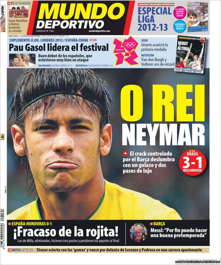 MUNDO DEPORTIVO NEYMAR – Sul quotidiano Mundo Deportivo si parla di Neymar, talento brasiliano che sta facendo grandi cose alle Olimpiadi.