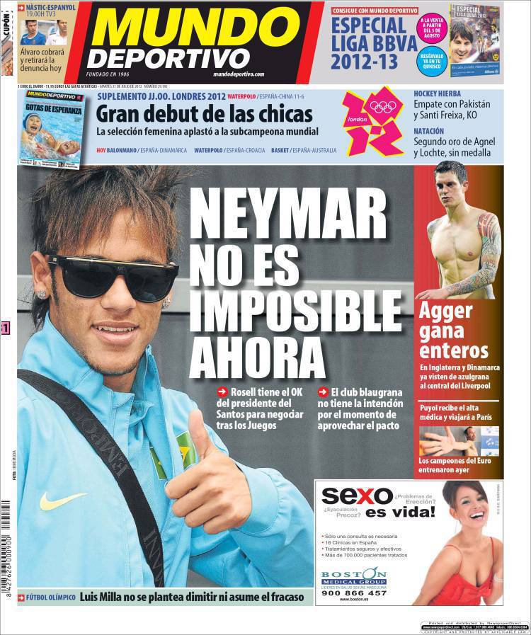 MUNDO DEPORTIVO NEYMAR – Il quotidiano Mundo Deportivo parla di Neymar che è sempre nel mirino del Barcellona.