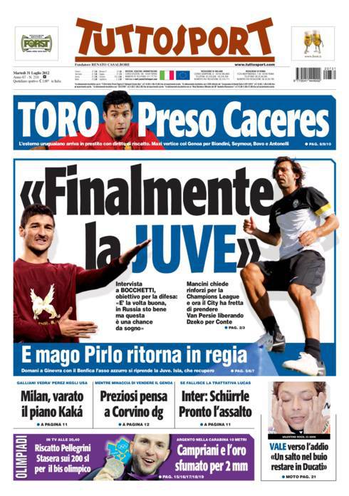 TUTTOSPORT JUVENTUS – Su Tuttosport intervista a Bocchetti che piace tantissimo alla Juventus.