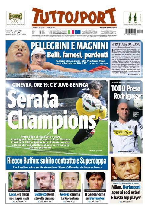 TUTTOSPORT CHAMPIONS – Su Tuttosport si parla del match di questa sera tra Juventus e Benfica, una sfida dal sapore di Champions League.