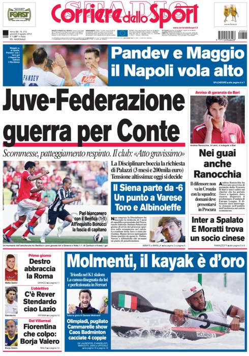 CORRIERE JUVENTUS CONTE – Sul Corriere dello Sport si parla della guerra tra la Federazione e la Juventus per Conte.