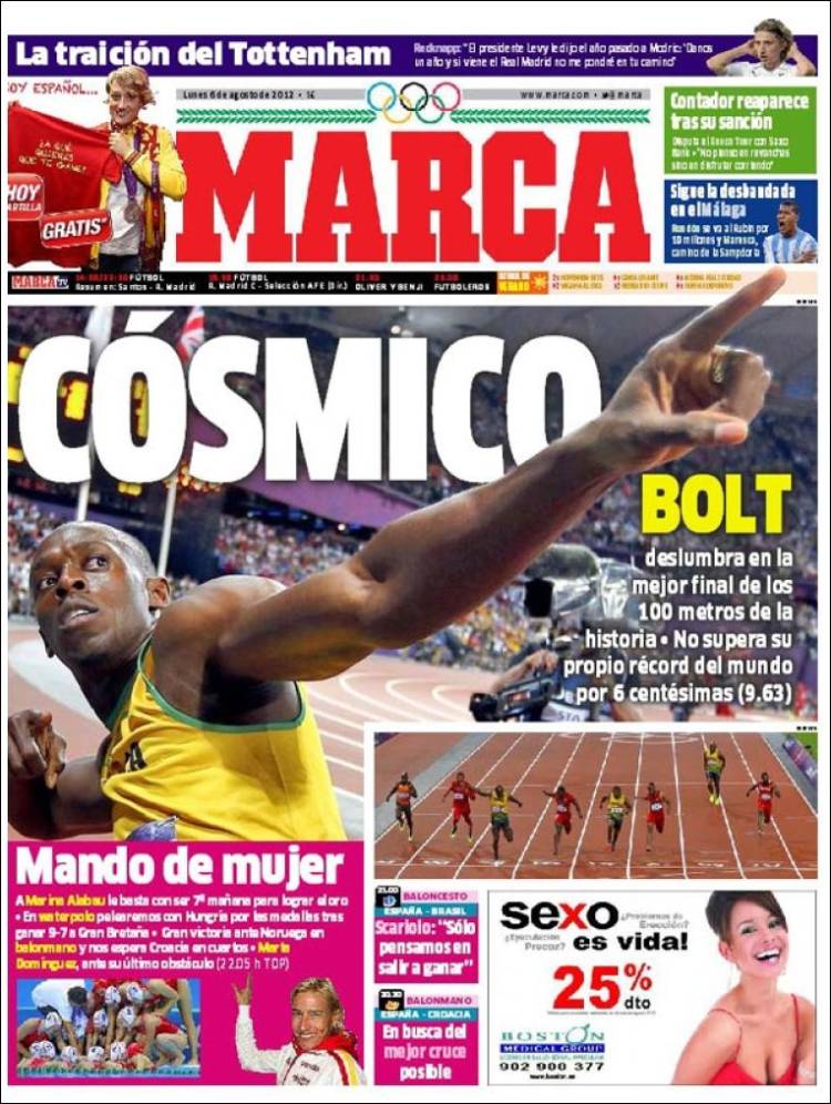 MARCA BOLT – Sul quotidiano Marca si parla di Bolt che ieri ha vinto la medaglia d’oro sui 100 metri.