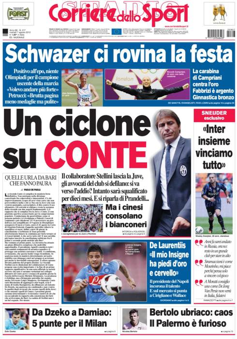 CORRIERE CONTE – Sul Corriere dello Sport si parla di Conte che potrebbe clamorosamente lasciare la Juventus.