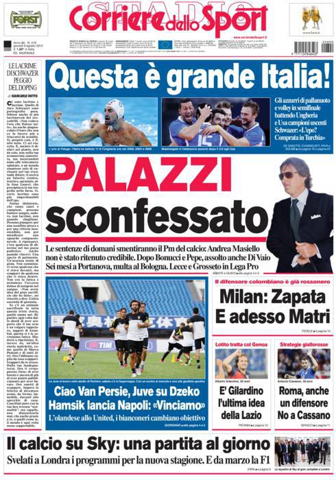 CORRIERE PALAZZI – Sul Corriere dello Sport si parla di Palazzi che verrà sconfessato dalle sentenze di domani per il caso Scommessopoli.