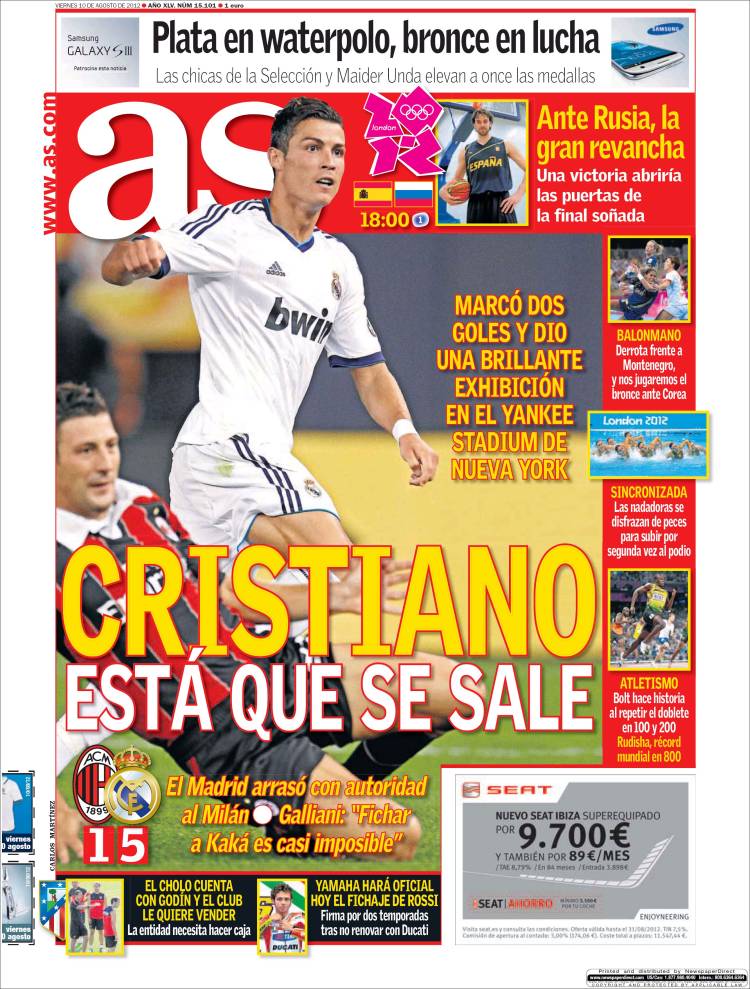 AS RONALDO – Sul quotidiano As si parla di Ronaldo autore di una doppietta contro il Milan.