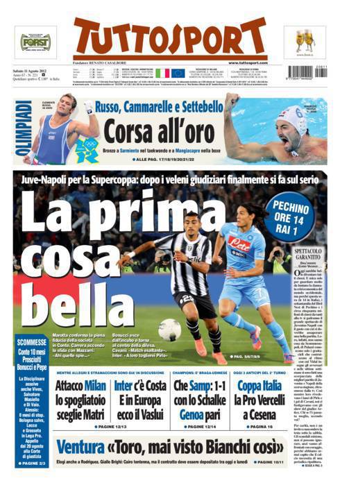 TUTTOSPORT JUVENTUS NAPOLI – Su Tuttosport si parla di Juventus-Napoli, sfida per la Supercoppa Italiana.