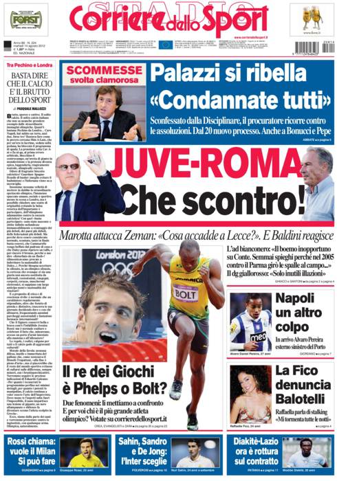 CORRIERE JUVENTUS ROMA – Sul Corriere dello Sport si parla dello scontro verbale tra Juventus e Roma.