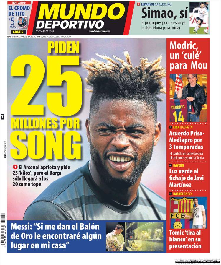 MUNDO DEPORTIVO SONG – Sul quotidiano Mundo Deportivo si parla di Song dell’Arsenal che piace al Barcellona.