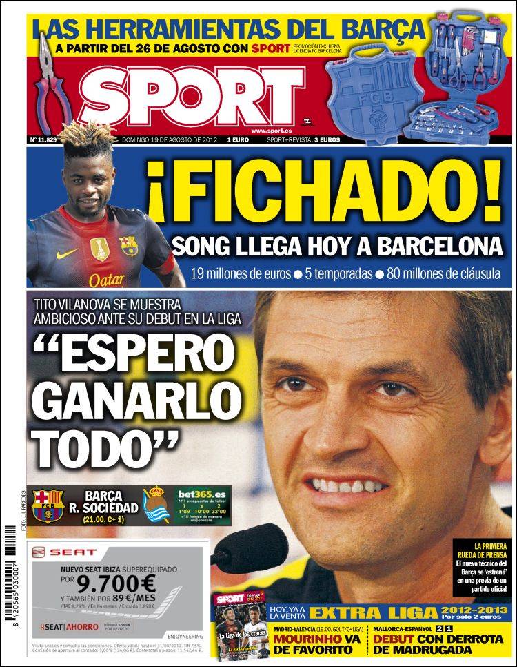 RASSEGNA STAMPA ESTERA SPORT – C’è grande attesa per la prima giornata della nuova stagione della Liga spagnola. Il Barcellona affronterà questa sera alle 21 la Real Sociedad. Ieri in conferenza stampa, come sottolineato da Sport, il tecnico dei blaugrana Tito Vilanova si è mostrato ambizioso alla vigilia del suo debutto in campionato: vuole vincere tutto, proprio come il suo predecessore Guardiola.