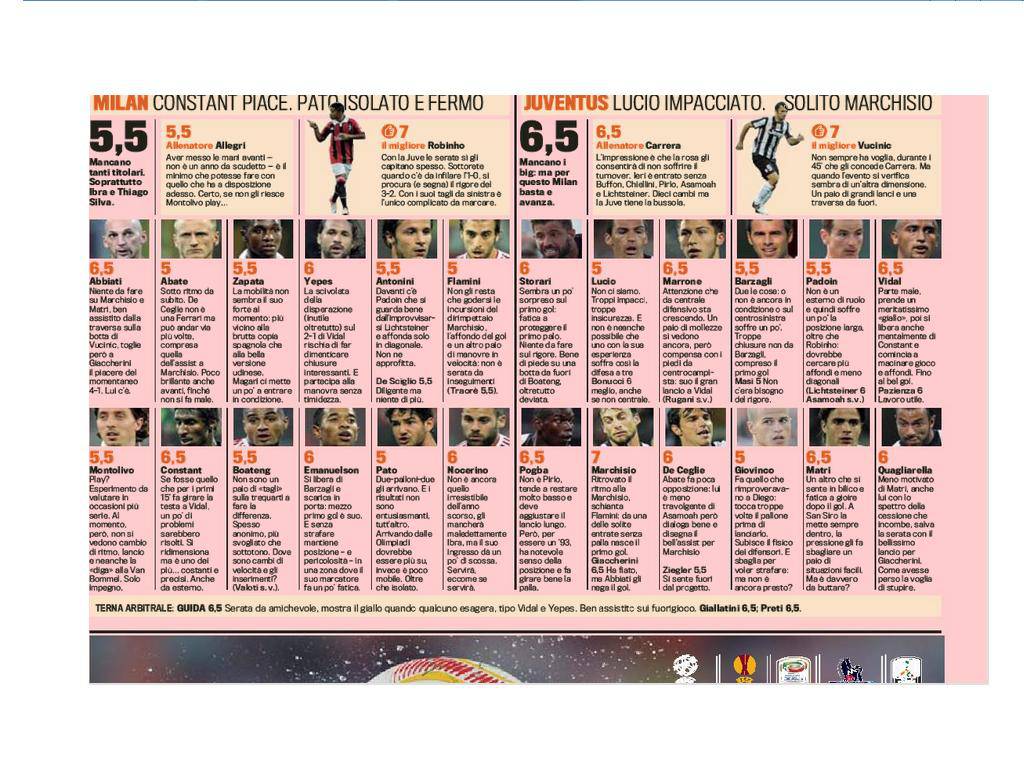 MILAN JUVENTUS VOTI PAGELLE GAZZETTA FOTO – Milan e Juventus ieri hanno giocato il trofeo Berlusconi, consueto appuntamento estivo che è un po’ l’aperitivo del campionato che inizierà tra cinque giorni. La Juventus ha vinto tre a due mostrando una qualità della rosa importante. Ieri infatti Carrera ha mandato in campo molti giovani e seconde linee, se così si possono definire i giocatori non titolari. Bene Matri, ma anche il giovane Pogba, fisicamente imponente. Nella Juventus migliore in campo Vucinic. Nel Milan ottima prova di Robinho autore di due gol, benissimo anche Constant che è stato vivace. Voti e pagelle della Gazzetta dello Sport.