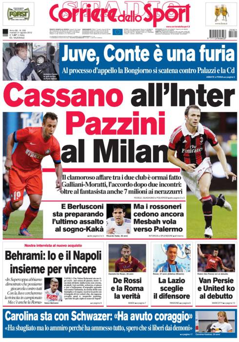CORRIERE CASSANO PAZZINI – Sul Corriere dello Sport si parla del clamoroso scambio di mercato tra Inter e Milan.
