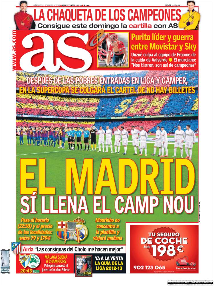 AS REAL MADRID – Sul quotidiano As si parla del Real Madrid che si allena al Camp Nou per la Supercoppa.