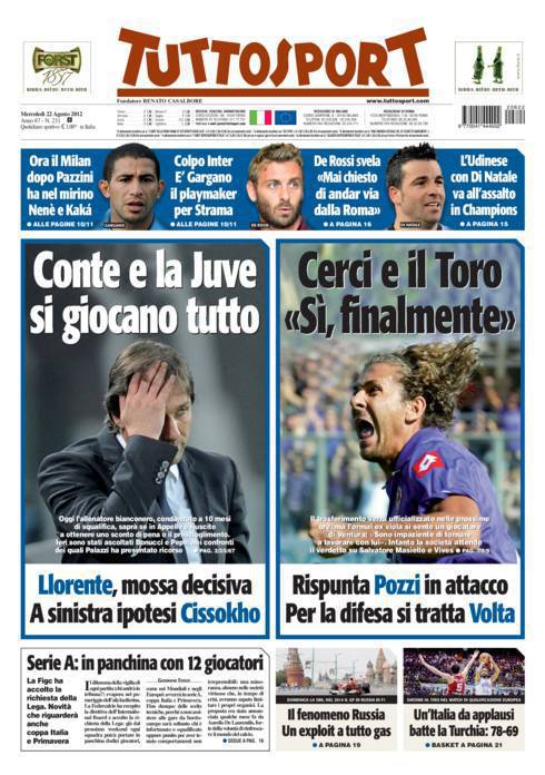 TUTTOSPORT LLORENTE CISSOKHO – Su Tuttosport si parla di Llorente per l’attacco della Juventus e Cissokho per la sinistra.