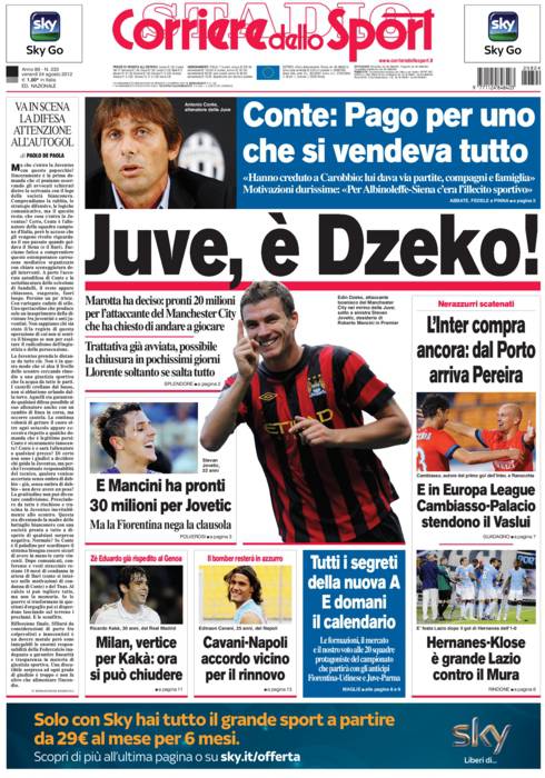 CORRIERE JUVENTUS DZEKO – Sul Corriere dello Sport si parla di Dzeko come possibile bomber della Juventus.