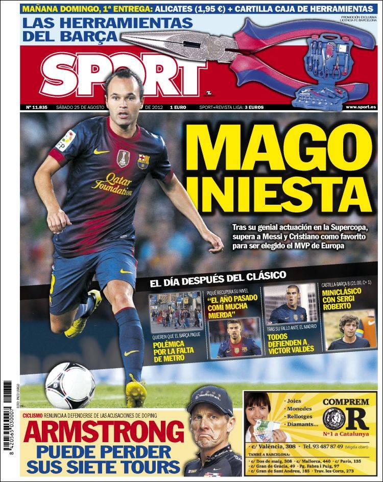 RASSEGNA STAMPA BARCELLONA INIESTA – Grande protagonista dell’andata della Supercoppa di Spagna vinta dal Barcellona per 3-2 è stato Iniesta. Il centrocampista spagnolo supera Messi e Cristiano Ronaldo nella corsa ad essere eletto il milgior giocatore d’Europa.