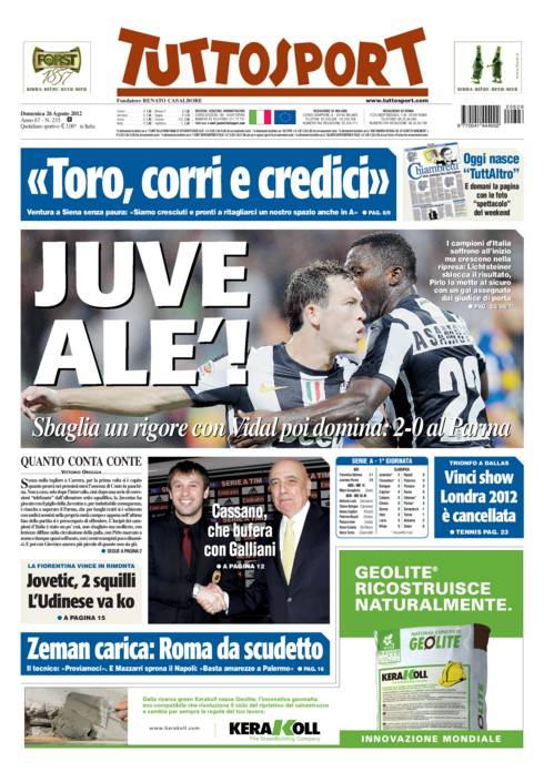 TUTTOSPORT PRIMA PAGINA – La prima pagina del quotidiano Tuttosport è dedicata, giustamente, alla vittoria della Juventus contro il Parma.