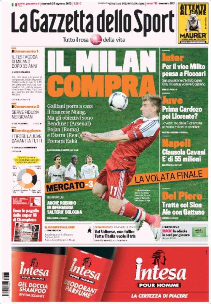 GAZZETTA DELLO SPORT MILAN – Ultimi 4 giorni di mercato anche per il Milan che, come svelato dalla Gazzetta dello Sport, agirà con forza sul mercato.