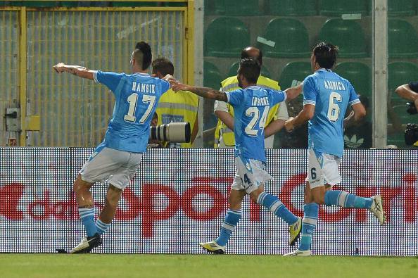 NAPOLI (3-5-1-1): De Sanctis 6.5; Campagnaro 6.5, Cannavaro 6,5, Britos 6; Maggio 6,5, Behrami 6 (dal 52′ Inler 6,5) 6, Dzemaili 7, Hamsik 7 (dall’89 Donadel s.v.), Zuniga 6; Insigne 6,5 (dall’81 Edu Vargas s.v.), Cavani 6. A disposizione: Rosati, Colombo, Gamberini, Grava, Fernandez, Uvini, Mesto, Aronica, El Kaddouri. All. Mazzarri 6.5