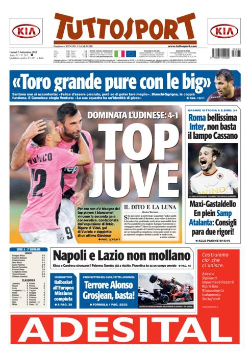 TUTTOSPORT JUVENTUS – Su Tuttosport si parla della Juventus che vince quattro a uno a Udine.