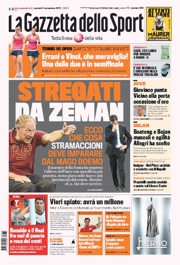 GAZZETTA ZEMAN – Sulla Gazzetta dello Sport si parla di Zeman che ha stregato il giovane Stramaccioni.