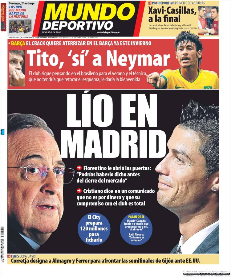 MUNDO DEPORTIVO REAL MADRID – Sul quotidiano Mundo Deportivo si parla della lite a Madrid tra Ronaldo e il presidente Florentino Perez.