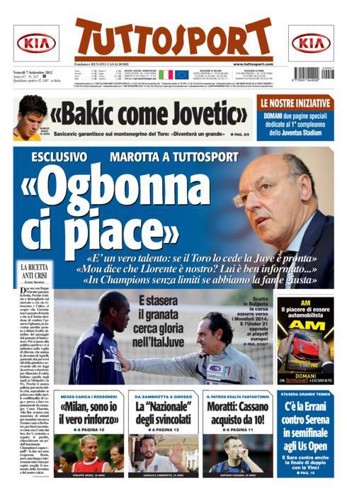 TUTTOSPORT OGBONNA – Su Tuttosport parla Marotta che rivela di avere interesse nei confronti di Ogbonna.
