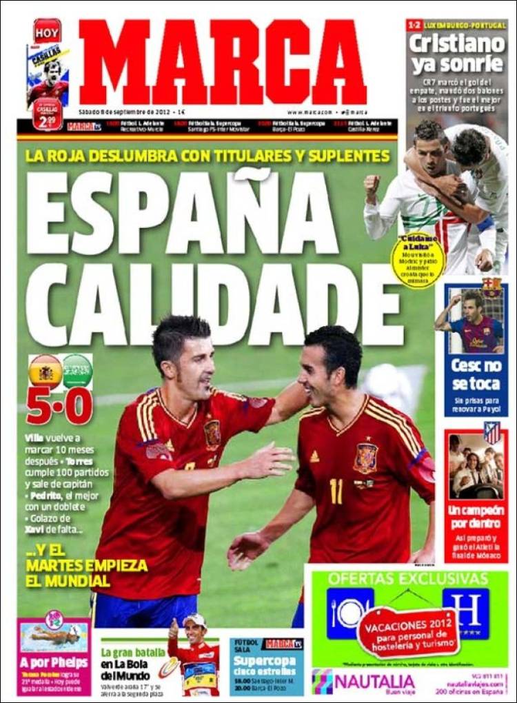 MARCA SPAGNA – Sul quotidiano Marca si parla della Spagna che in amichevole vince cinque a zero contro l’Arabia Saudita.