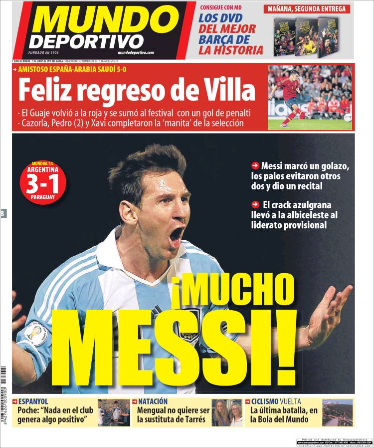 MUNDO DEPORTIVO MESSI – Il Mundo Deportivo parla di Messi che ha trascinato l’Argentina contro il Paraguay. Vittoria per tre a uno.