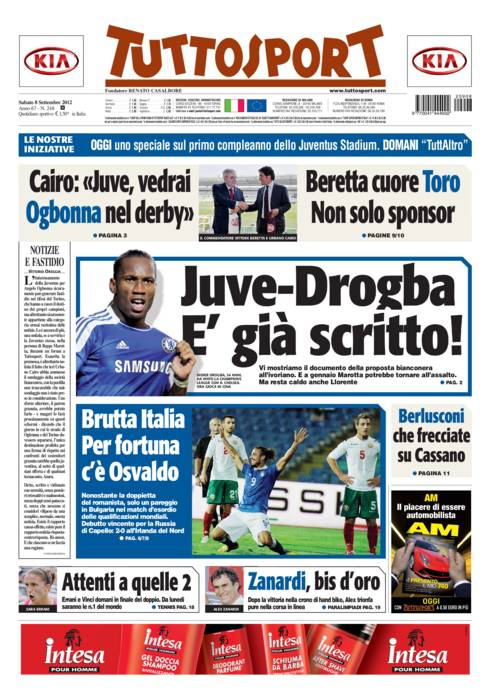 TUTTOSPORT JUVENTUS DROGBA – Su Tuttosport si parla di Didier Drogba, attaccante ivoriano, che piace molto alla Juventus.