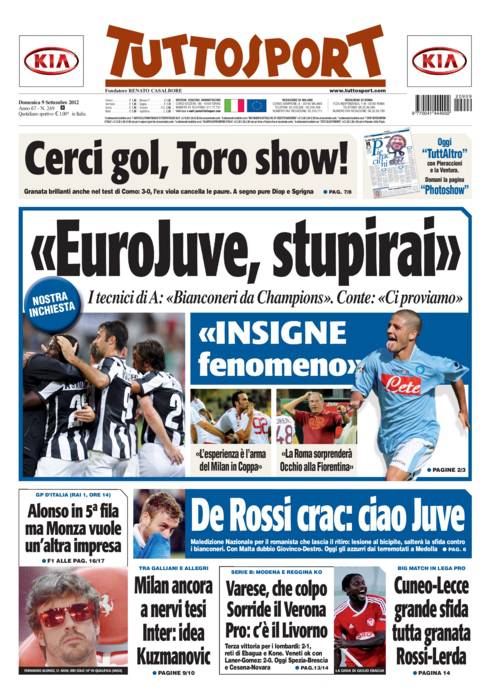 Tuttosport: “Eurojuve, stupirai” 09/09/2012 di admin TUTTOSPORT PRIMA PAGINA – Di seguito trovate la prima pagina del quotidiano Tuttosport di oggi, 9 settembre 2012: buona visione La redazione di Calciomercatonews.com