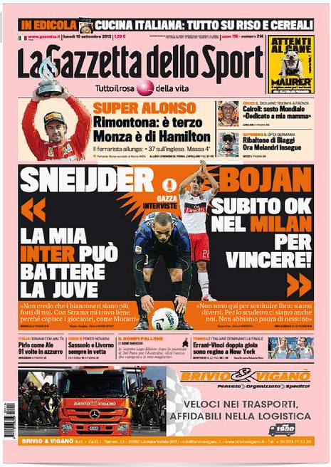 GAZZETTA DELLO SPORT PRIMA PAGINA – Di seguito la prima pagina de La Gazzetta dello Sport, di oggi 10 settembre 2012: buona visione!