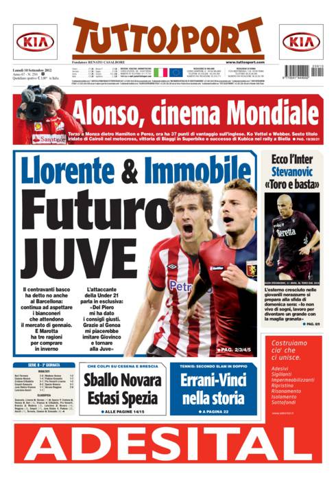 TUTTOSPORT PRIMA PAGINA – Di seguito la prima pagina di Tuttosport, di oggi 10 settembre 2012: buona visione!