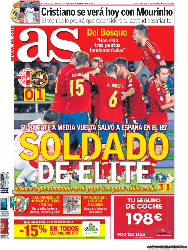 RASSEGNA STAMPA SOLDADO SPAGNA GEORGIA – Contro una Georgia corsara, la Spagna campione del mondo e d’Europa si salva all’86’ grazie al Soldado che entra a far parte dei calciatori d’elitè. Per Del Bosque sono stati conquistati tre punti fondamentali nonostante sia mancata la concretezza sotto porta.