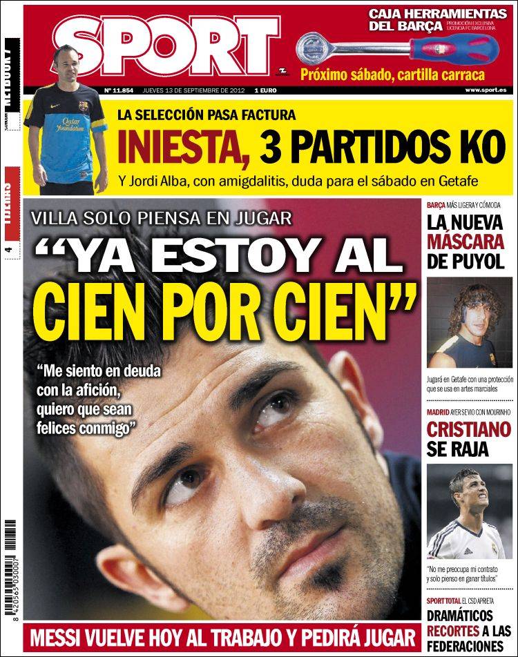 RASSEGNA STAMPA VILLA BARCELLONA – David Villa conferma le sue buone condizioni fisiche e ringrazia i tifosi per l’affetto dimostrato durante i mesi di convalescenza: “Sono al cento per cento. Sono in debito con tifosi; voglio che siano felici con me”.