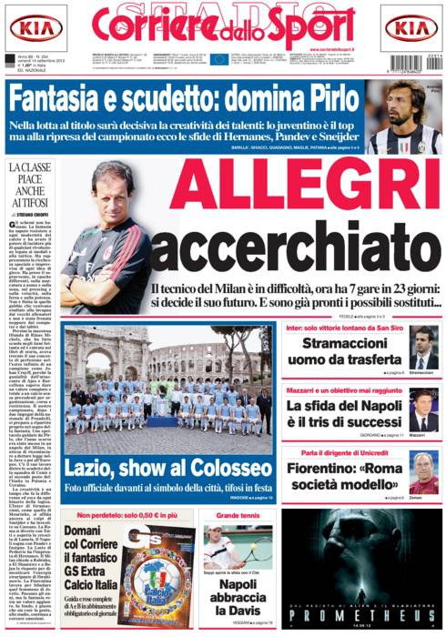 CORRIERE DELLO SPORT PRIMA PAGINA – Di seguito la prima pagina de Il Corriere dello Sport, di oggi 14 settembre 2012: buona visione!