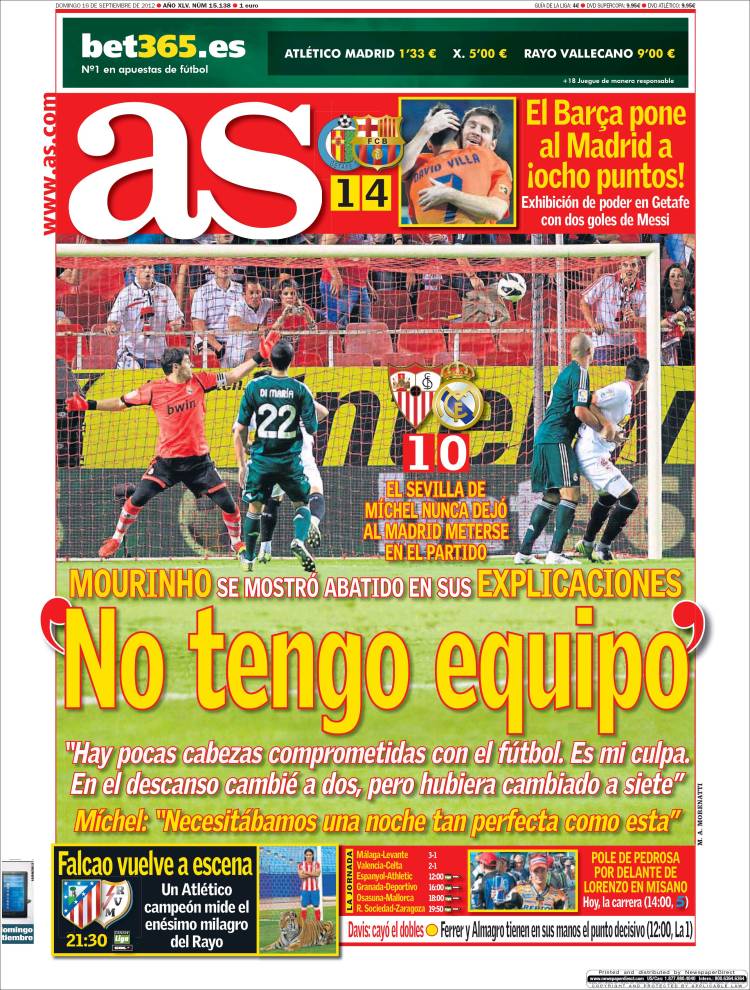 AS NON HO SQUADRA – Al termine del match perso contro il Siviglia, Josè Mourinho, tecnico del Real Madrid, ha giustificato la sconfitta spiegando di ‘Non avere squadra’. Parole forti che cercheranno di risvegliare l’animo madridista.