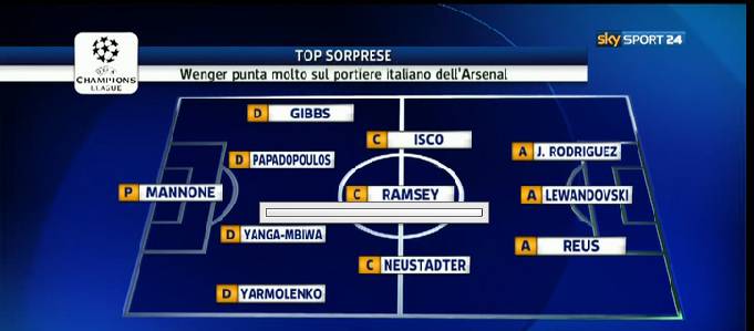 La nostra nazione è poco rappresentata sia a livello di club, sia a livello di uomini, essendo presente il solo Mannone, portiere dell’Arsenal, come portabandiera italiano.Una forte difesa a quattro con l’ucraino Yarmolenko, già protagonista con la maglia della sua nazionale nell’europeo 2012, l’obiettivo francese del Milan Yanga-Mbiwa, chiamato all’esordio europeo con il Montpellier, il greco Papadopoulos dello Schalke 04 ed il terzino dell’Arsenal Kieran Gibbs.