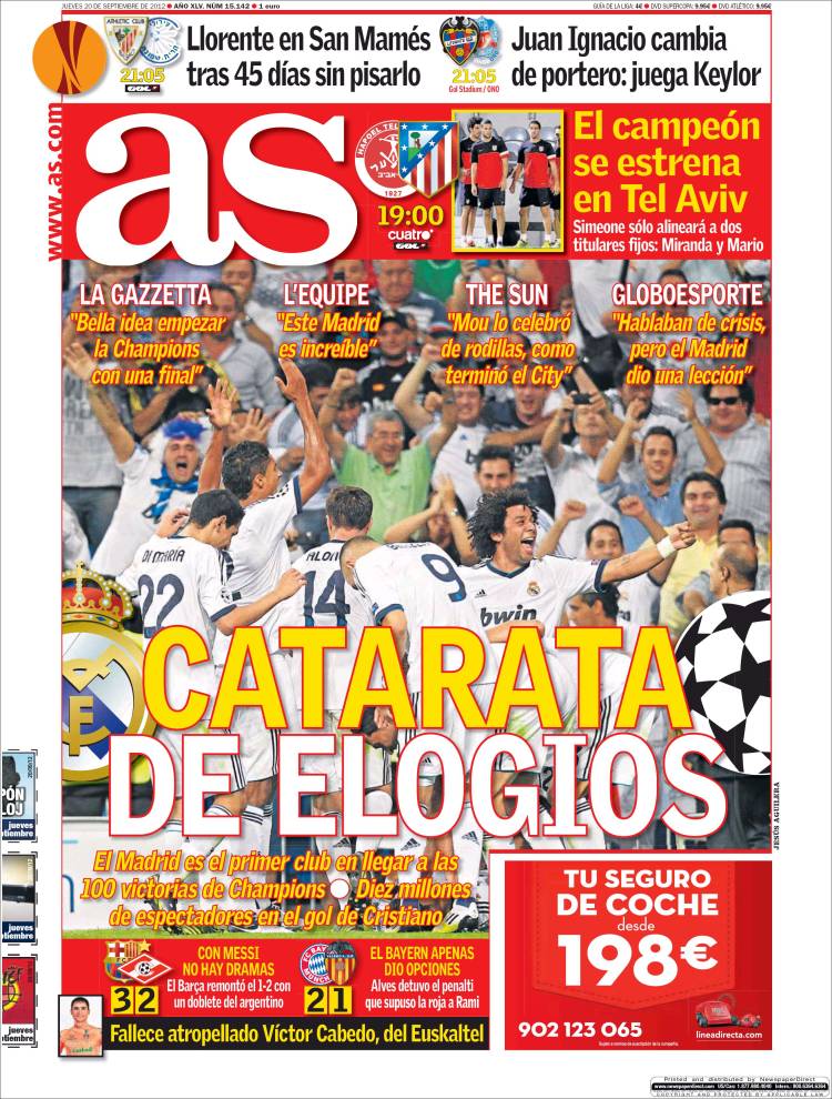 RASSEGNA STAMPA REAL MADRID CHAMPIONS LEAGUE – Il Real Madrid è il primo club a raggiungere le 100 vittorie in Champions League. Dieci milioni di spettatori al momento del gol di Cristiano Ronaldo che ha regalato la vittoria alle Merengues.