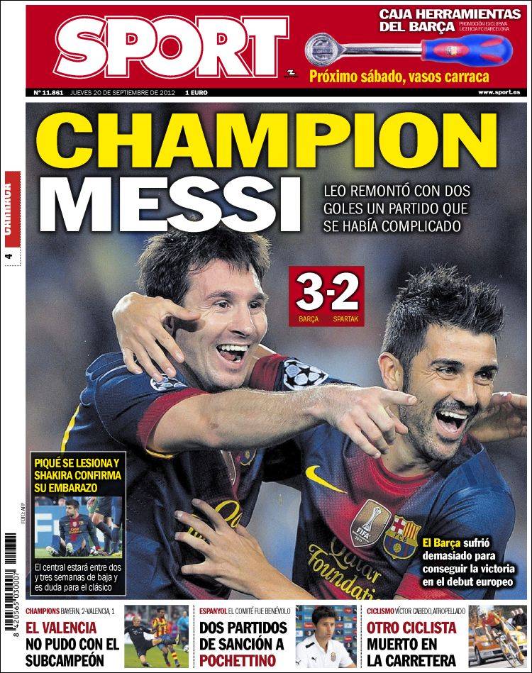 RASSEGNA STAMPA CHAMPIONS LEAGUE BARCELLONA SPARTAK MOSCA MESSI – Messi rimonta con due gol una partita che era diventata pericolosa. Il Barcellona soffre ma riesca ad ottenere i tre punti della vittoria al debutto in Champions League. Piquè e Shakira annunciano che diventeranno genitori.