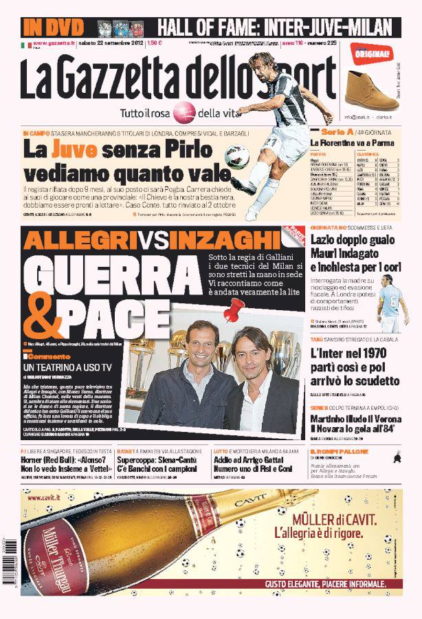 GAZZETTA INZAGHI ALLEGRI – Sulla Gazzetta dello Sport si parla della stretta di mano tra Allegri e Inzaghi avvenuta nella sede del Milan dopo la lite tra i due di qualche giorno fa.