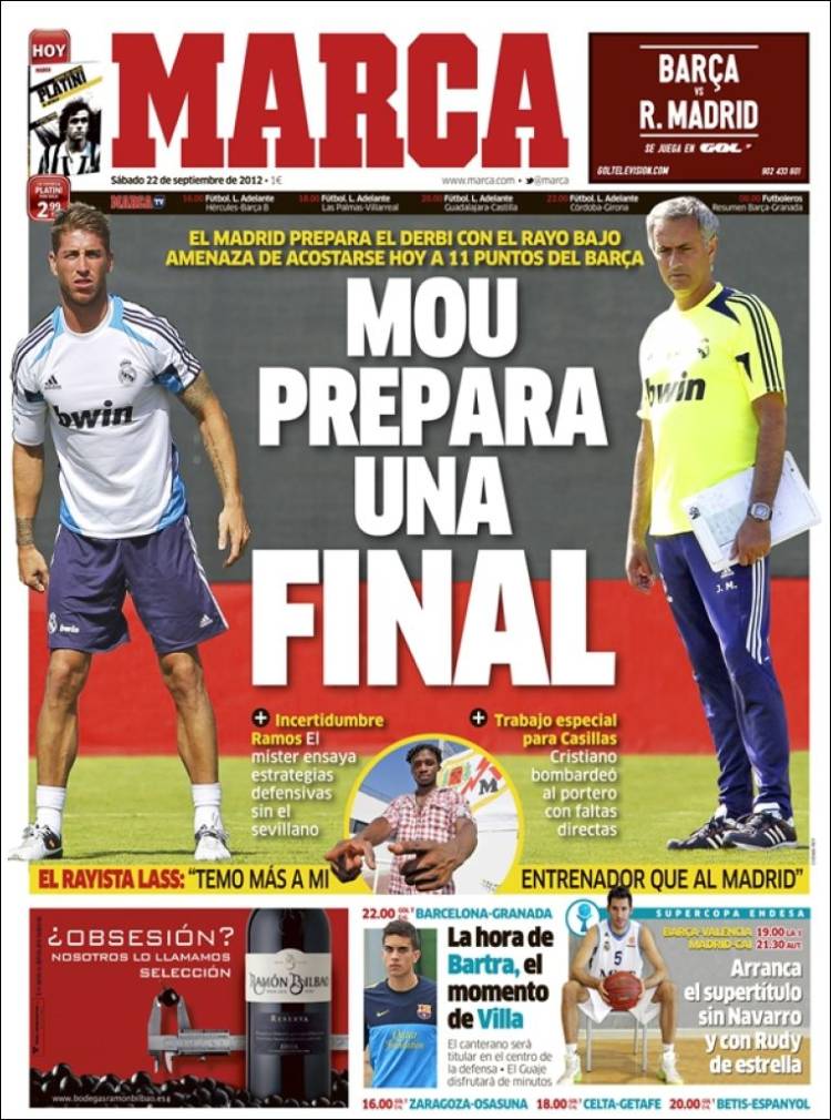 MARCA MOURINHO – Il quotidiano Marca parla di Mourinho che sta preparando la partita contro il Rayo come una finale.