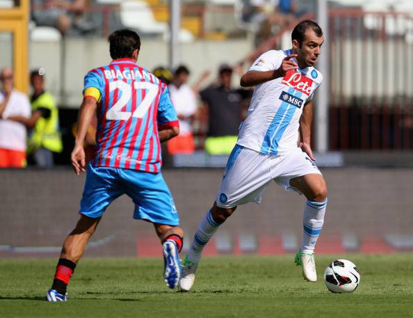 SERIE A CATANIA NAPOLI VOTI PAGELLE – Nonostante un’intera partita giocata in undici contro dieci, il Napoli non riesce ad essere pericoloso e a far male al Catania che non solo resiste ma almeno in due occasioni rischia di andare anche in vantaggio. Tanti tentativi da parte degli azzurri che, però, non sono quasi mai pericolosi. Il Catania, invece, nei minuti finali va vicinissimo al gol con Gomes. Non bastano nella ripresa gli ingressi di Insigne e Vargas per cambiare le sorti dell’incontro. Un pareggio a reti bianche, che porta il Napoli a 10 punti in classifica, il Catania a 5. Ecco voti e pagelle: