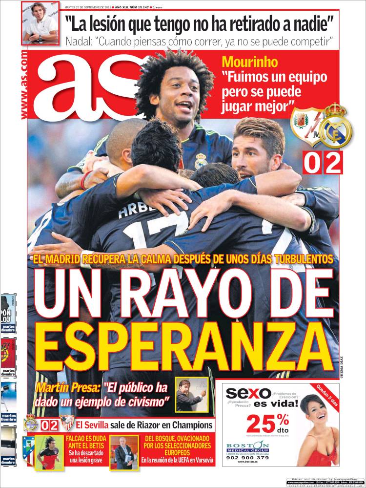 AS REAL MADRID – Il quotidiano As parla di raggio di speranza del Real Madrid dopo le ultime opache prestazioni.