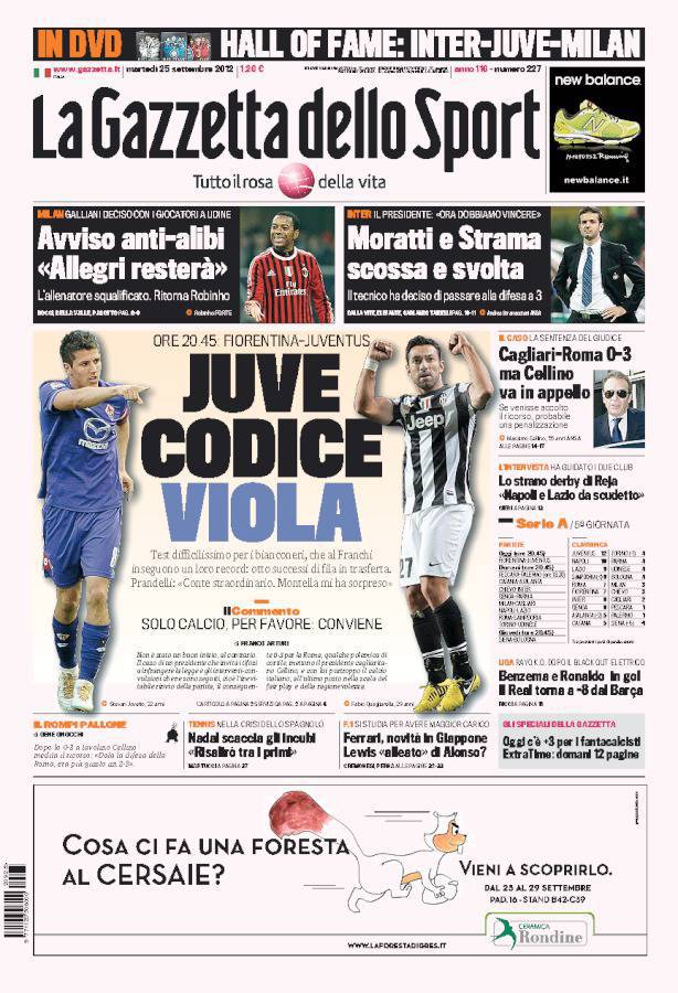 GAZZETTA JUVENTUS – Sulla Gazzetta dello Sport si parla della Juventus che questa sera giocherà contro la Fiorentina.