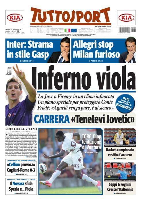 TUTTOSPORT JUVENTUS – Questa sera Juventus e Fiorentina giocheranno l’anticipo della quinta giornata di campionato.
